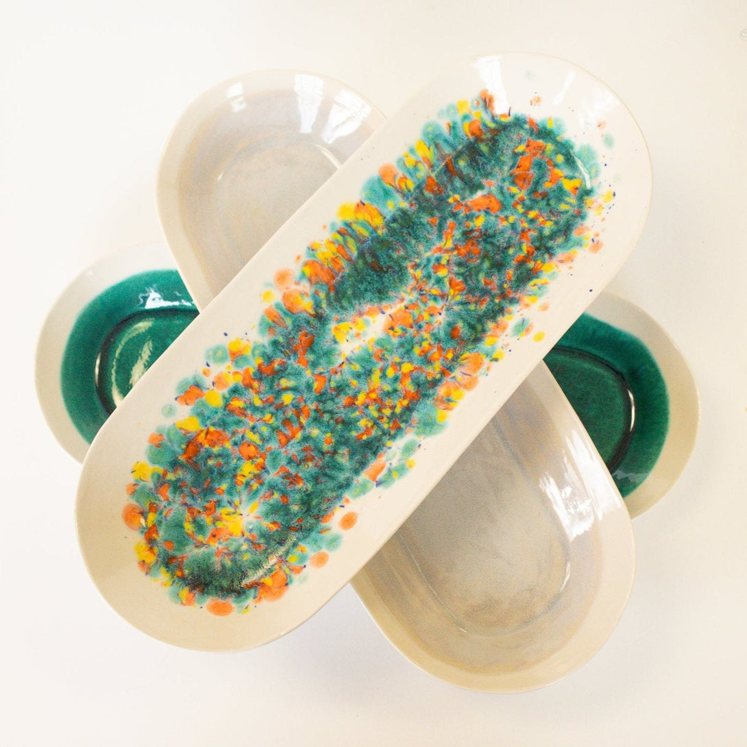 These stunning Artisan Oval Long Dishes will add that special touch to your customer’s dinner table! Each dish is hand-painted with a certain rich color glaze, creating a unique look on each plate. These plates are dishwasher (NOT oven-safe)