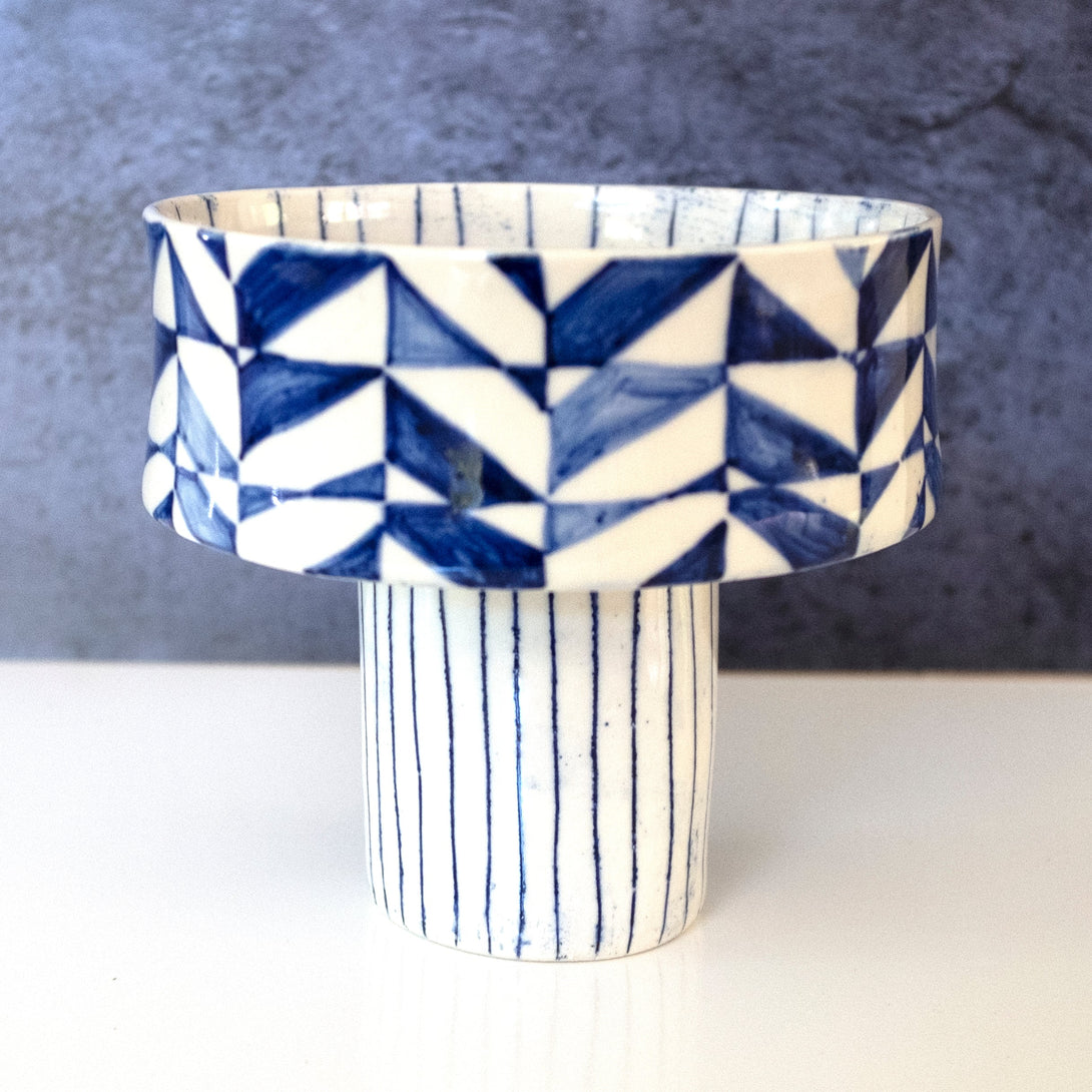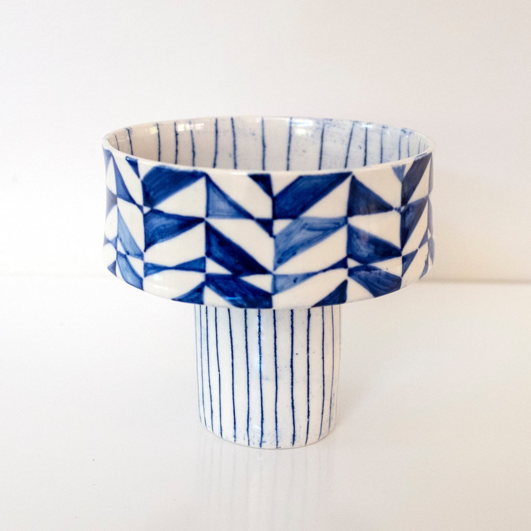 I'm only making a handful of these raised bowls, so the joy isn't lost. No two will be exactly the same, as they are handmade and painted. Great as a center piece or fruit bowl or whatever. Modern but not taking itself too seriously.