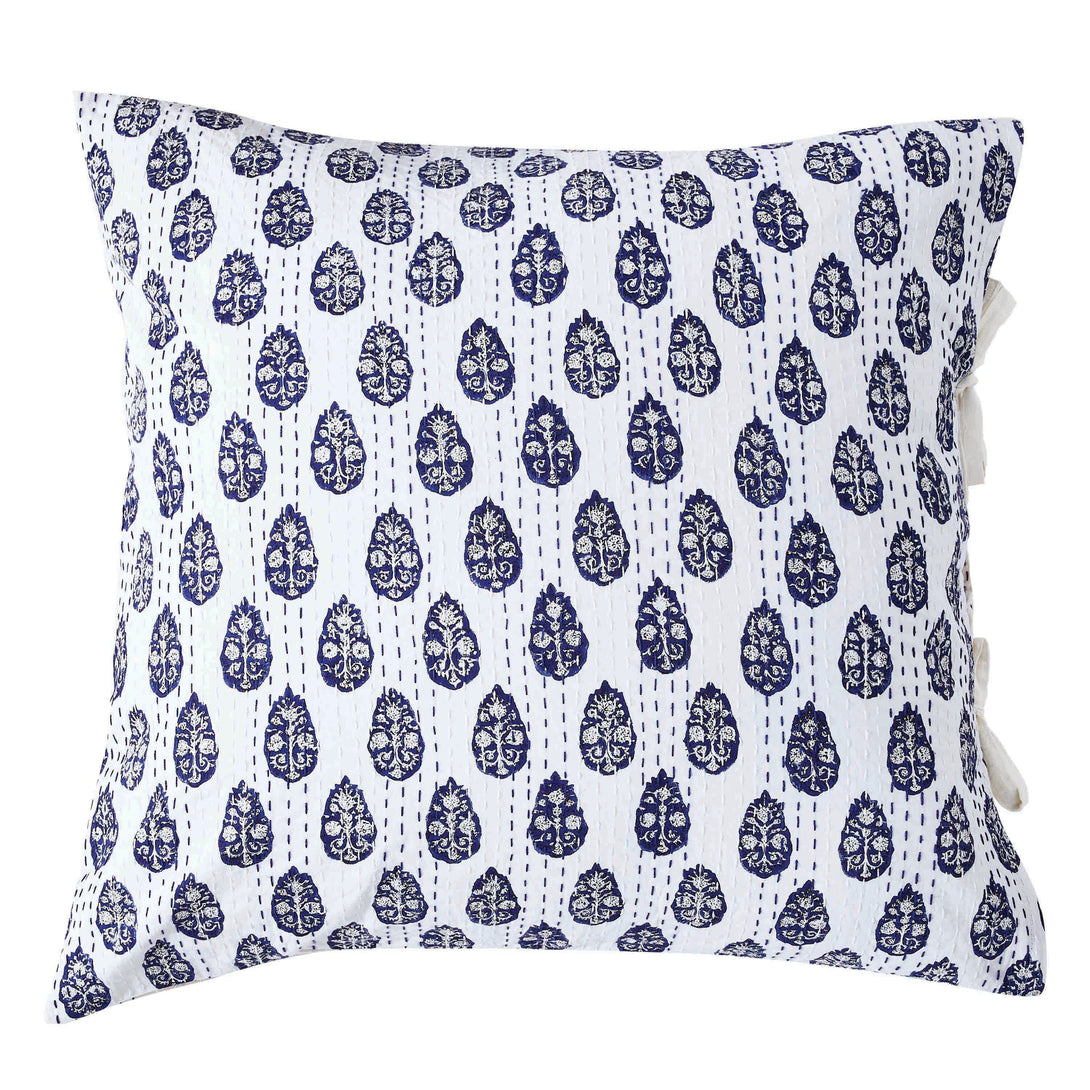 Hand Stitched Block Print Kantha Pillow Sham Pairs