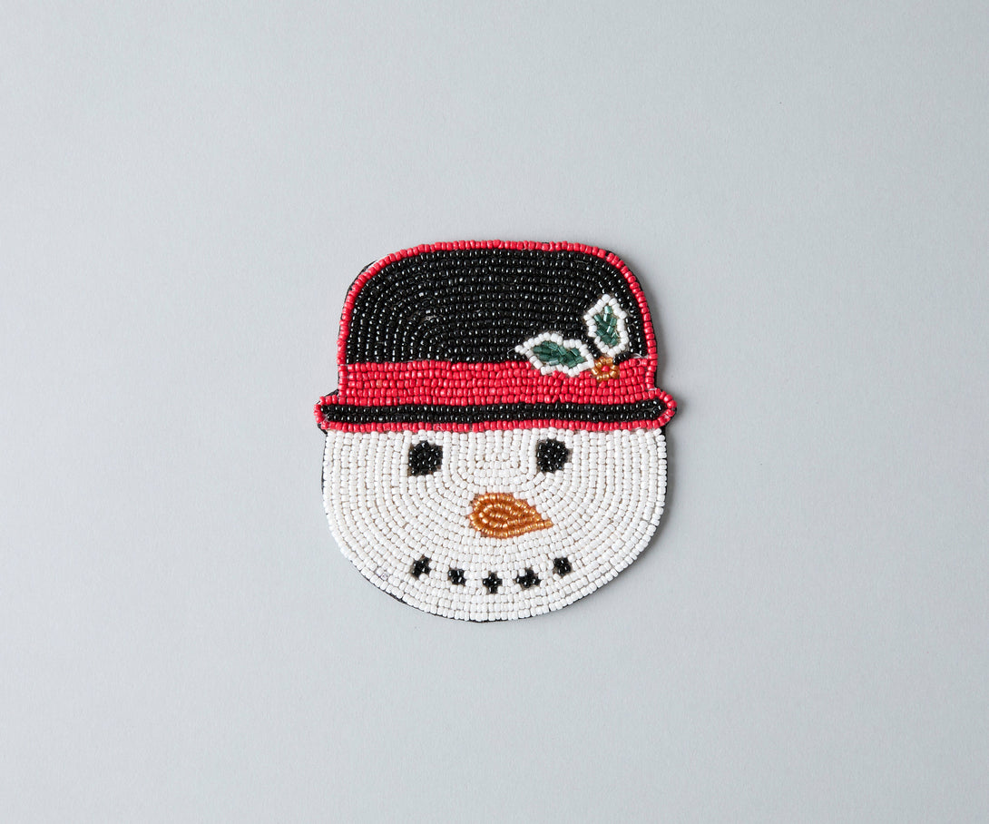 Add a touch of winter magic to your holiday table with these charming beaded coasters. Each coaster is meticulously drawn out by hand before being adorned with intricate glass beads and a black velvet backing. The adorable snowman design is sure to delight your guests and create a festive atmosphere.
