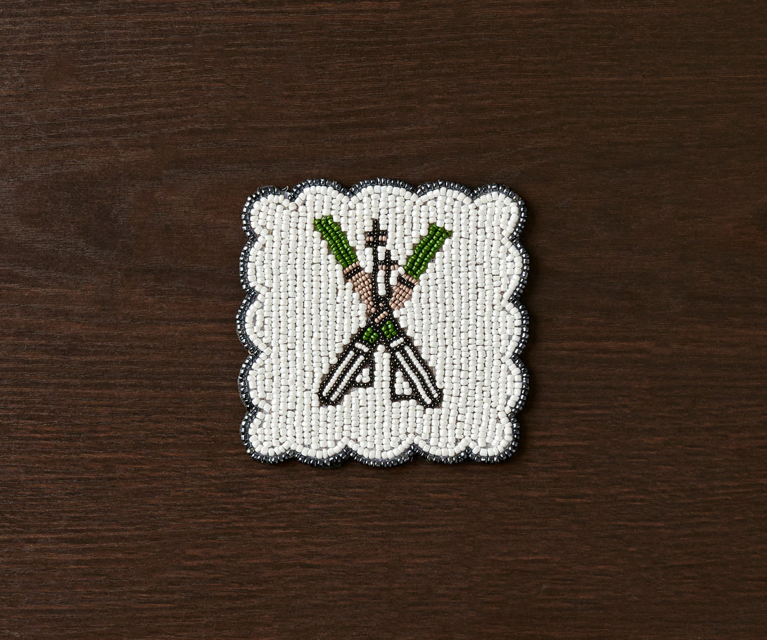 Handmade Beaded Ski Coaster with Pearls – Elegant Black, White, and Green Coaster for Tableware & Home Decor