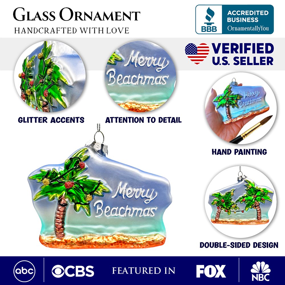 Merry Beachmas Christmas Palm Tree Glass Ornament, Xmas in July Tropical Decor
