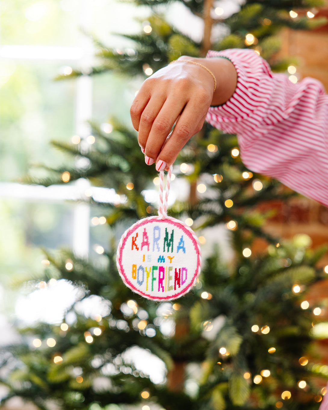 Whether you're naughty or nice, this cheeky needlepoint ornament will make the season bright. Backed in luxe velvet, we've revived this Southern staple with sayings that are sure to get a smile.