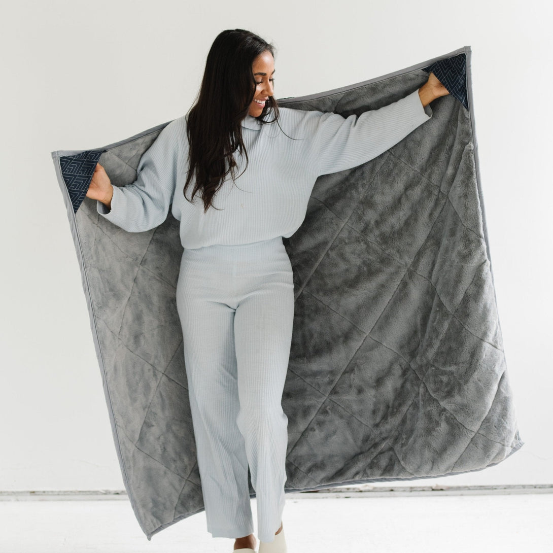 Saranoni outdoor blankets are designed with adventure in mind! This incident-proof blanket features one side of water resistant material, and one side of faux fur fabric, as well as reinforced, durable quilting. In the case of inclement weather or cold temperatures, your blanket is equipped with a lined hood, as well as pockets in the corners of the blanket for chilly fingers! Your 50"x60" throw blanket or your 50"x80" XL blanket will arrive in a stuff bag that can be worn as a back back or cross-body bag for easy toting to any event while leaving your hands free!