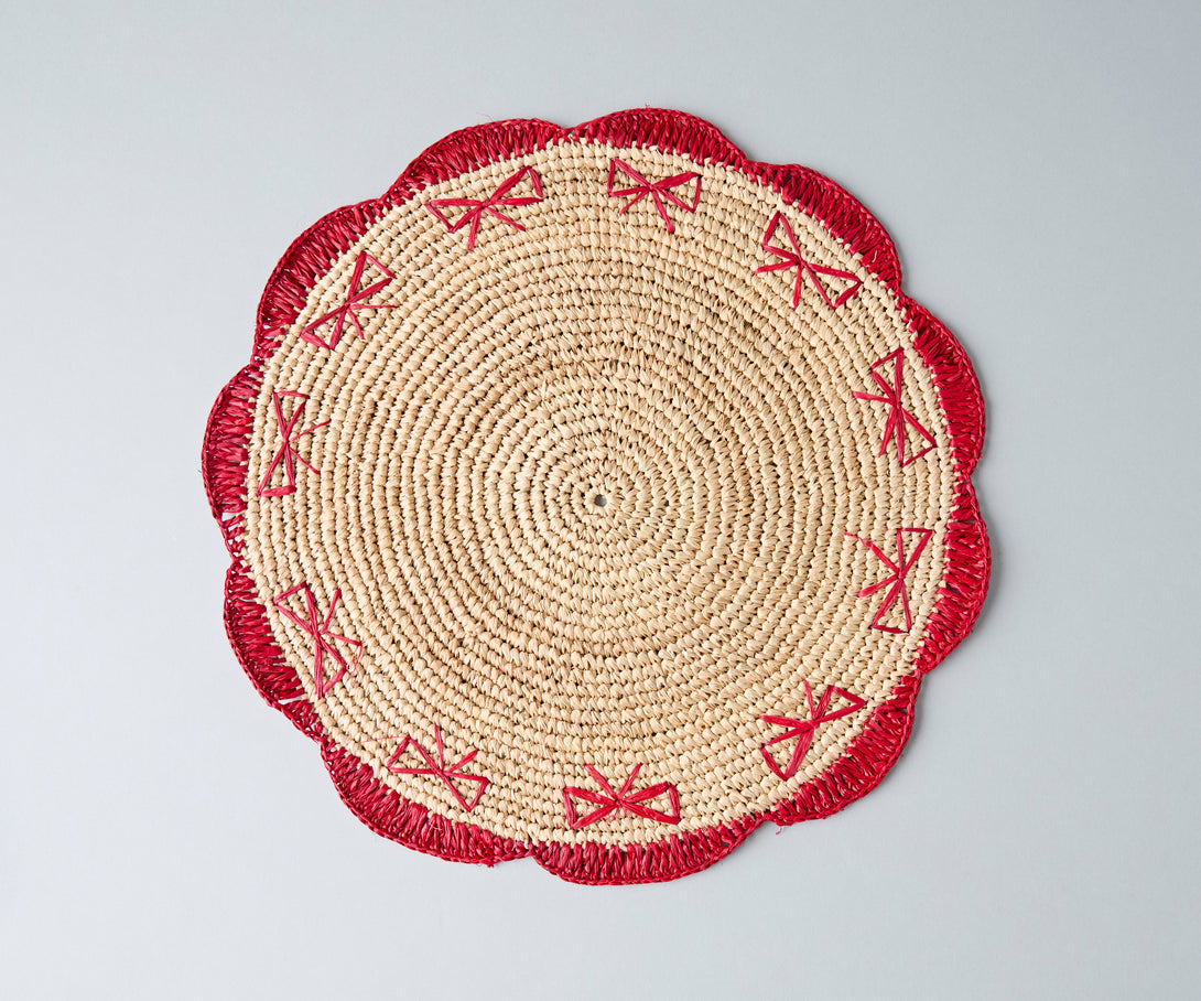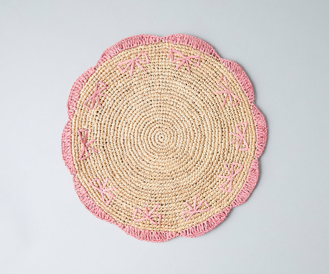 Payton James Handwoven Bow Placemats – Hand-Crocheted Raffia Palm Placemats – Unique Kitchen & Dining Table Decor – Handmade Tableware