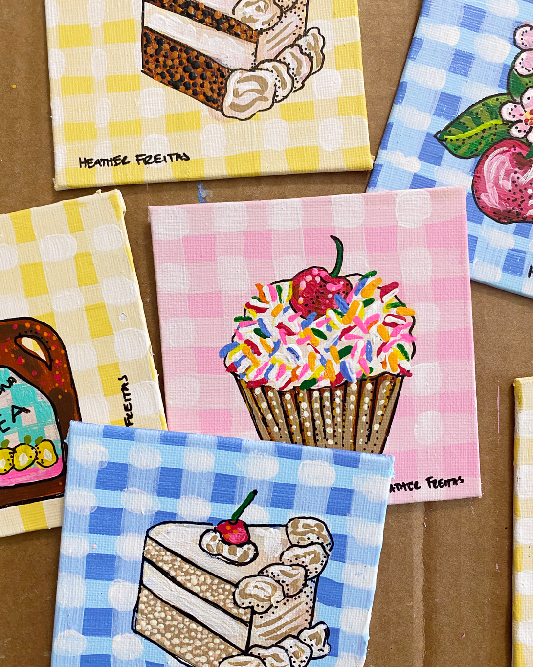 This original painting measures 4x6 inches and is mixed media on canvas panel. It is varnished with a crystal clear gloss varnish and is awarded with a certificate of authenticity.